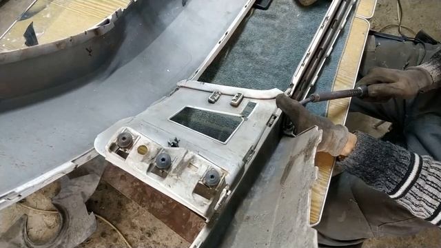 Для проведения ремонта бампер необходимо снять с автомобиля, это позволит легко располагать бампер в удобном для ремонта — пайке и покраски положении.
