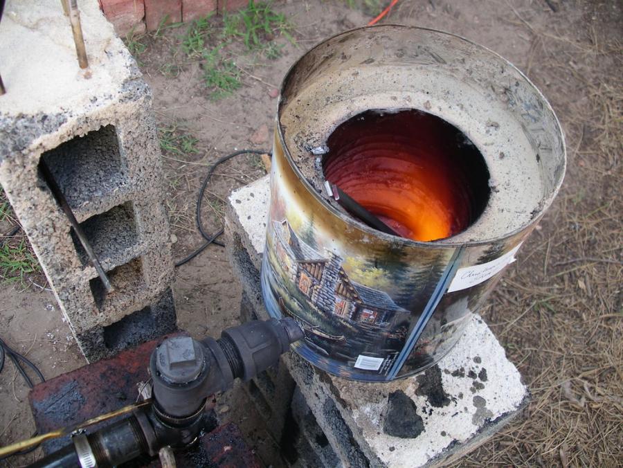 Сопло горелки направляют в котел, где происходит нагрев топливной камеры и водяной рубашки. Также можно использовать устройство для плавки и нагрева металлов.