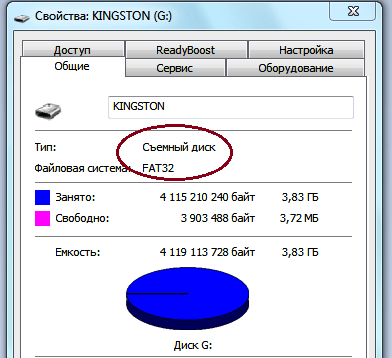 - Формат. Сначала файлы проверяются, с каким расширением они написаны. Если они соответствуют заявленным требованиям, форматируется весь диск. Введенные данные копируются повторно. Делается этот процесс таким образом: переносное устройство подключается к ноутбуку или компьютеру, находится раздел «съемный накопитель» и делается на нем правый клик. Далее рекомендуется нажать кнопку «форматировать» и в появившемся меню выбрать FAT32.