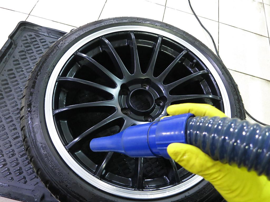 - Промойте колесо и колесную нишу, включая отверстия под гайки и между спицами.