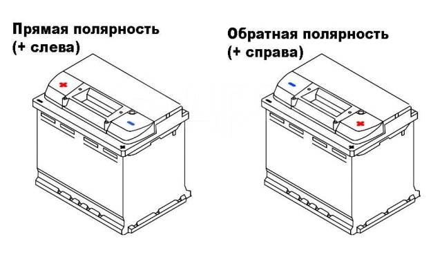 Вид полярности легко определить, расположив аккумуляторную батарею контактами вниз и посмотрев, с какой стороны корпуса находится (+). Кроме прямого и обратного расположения, аккумуляторные клеммы имеют ряд других отличий.