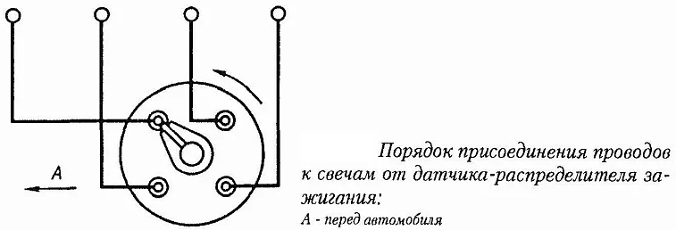 Провода крышки распределителя должны быть подключены, как показано на рисунке.