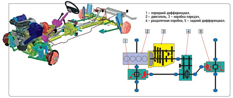 Этой особенностью является наличие полного привода всех четырех колес с дифференциалами.