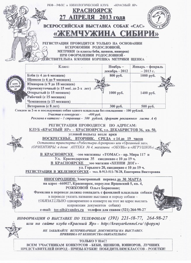 В выставочном мероприятии песик может зарегистрироваться только в одном классе.