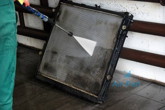 - Смывание водой под низким давлением во избежание деформации радиаторных сот