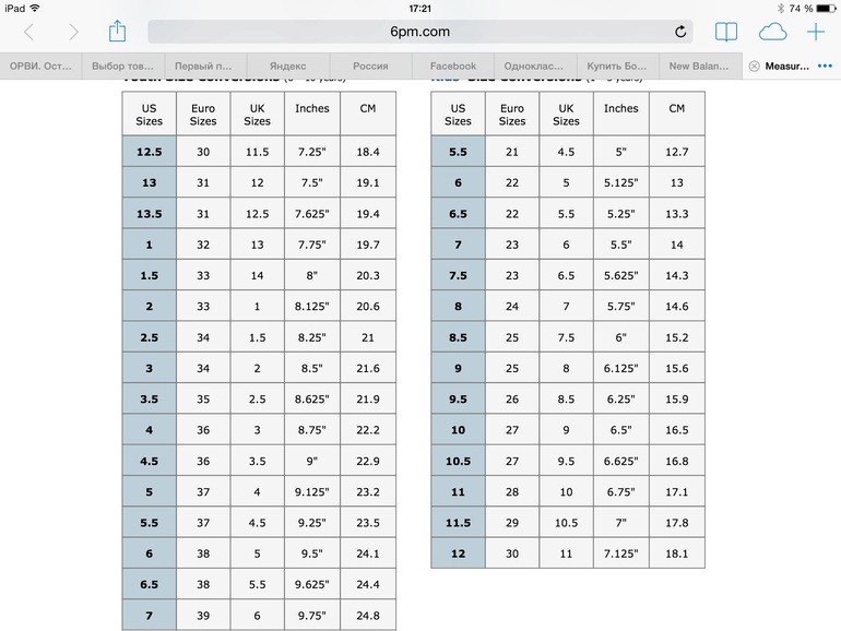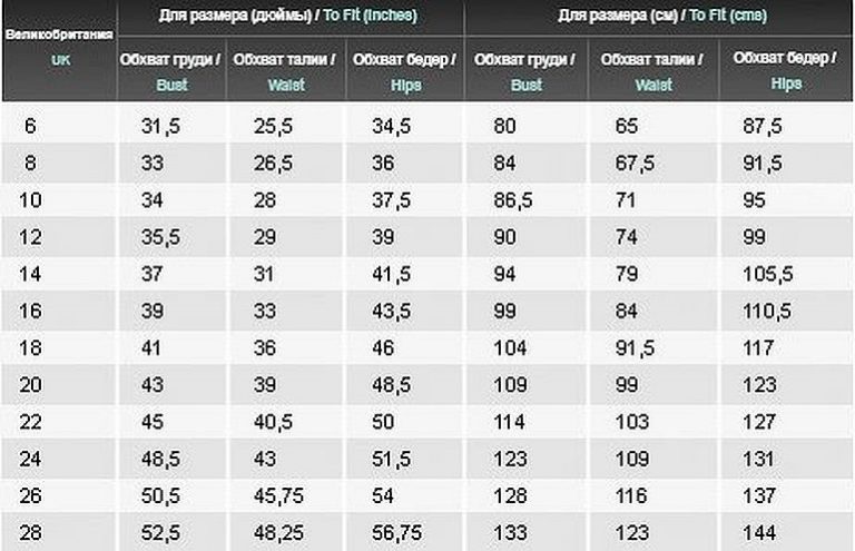 | INT Международный буквенный размер | GBR Размер в британской системе измерений | USA Размер в американской системе измерений | EUR Размер в европейской системе измерений |