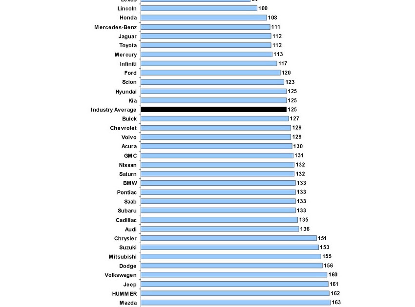 Благодаря этому он занял пятое место по надежности в этом году. JD Power зафиксировала в общей сложности 119проблем на 100 автомобилей 2012 г. за три года исследований.