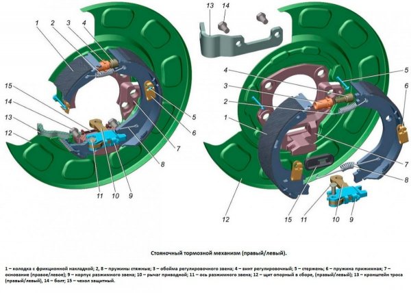 При этом в тормозных механизмах задних колес будут слышны щелчки от работы механизма автоматической регулировки зазоров между колодками и тормозными барабанами.