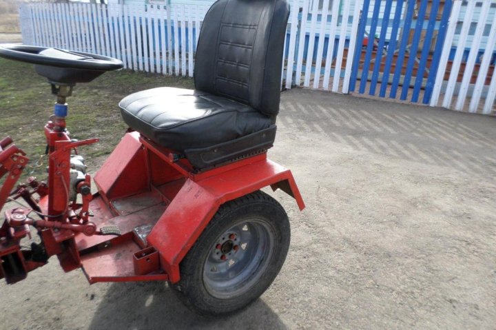 Вторую шестерню устанавливают на рулевую колонку. - Сиденье, которое можно предварительно снять с какого-нибудь легкового автомобиля, нужно приварить к раме салазки. Мастеру необходимо проследить, чтобы оно регулировалось, в особенности при управлении передним адаптером, прикрепленным к мотоблоку.