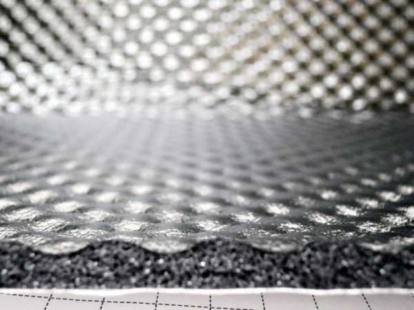 Звукоизолирующий материал (звукоизоляция) – принципиально отличается от вышеупомянутых шумопоглотителей, из-за своей ячеистой структуры и непроницаемой пленке, покрывающей материал снаружи. Звукоизоляторы такого типа обладают кроме звукоизоляции еще герметичностью и удержанием тепла.