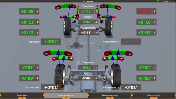 Колесо прокручивают еще раз и снова проделывают замеры. Полученные данные сравнивают, в них не должно быть больших расхождений. Если это не так, значит, с ходовой есть проблемы и регулировка здесь не поможет.