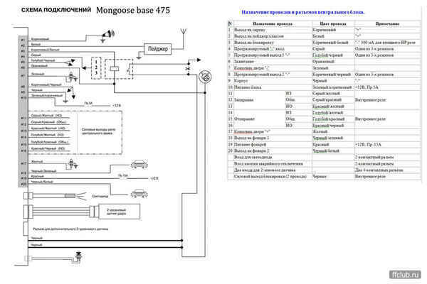 Auto alarm MONGOOSE ; Сигнализация MONGOOSE ; Схема подключения MONGOOSE ; Инструкции MONGOOSE |