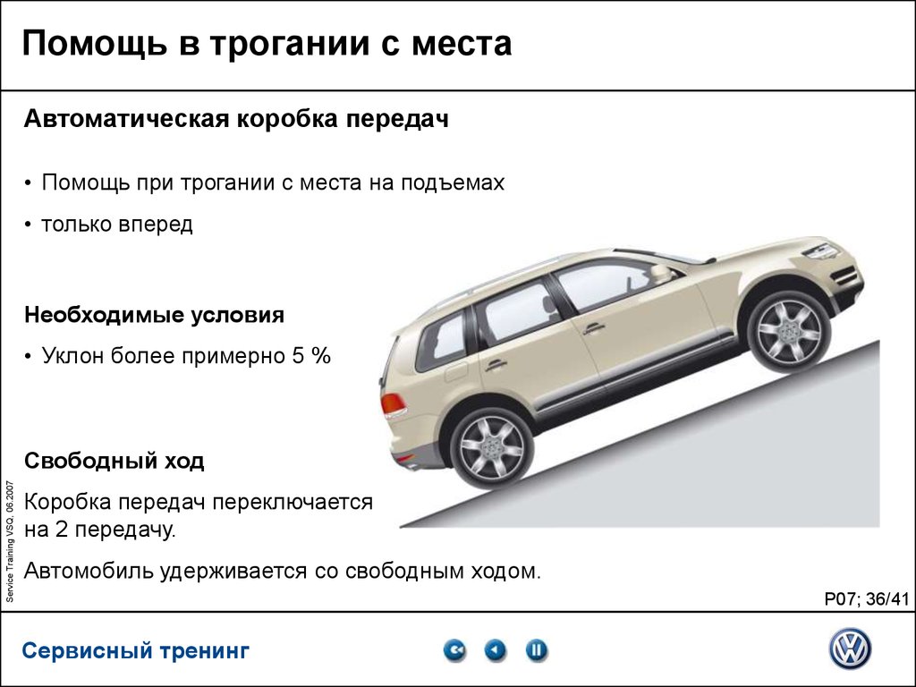 Для получения дополнительной информации о системе контроля трогания на подъеме и других связанных темах перейдите по ссылкам на следующей странице.