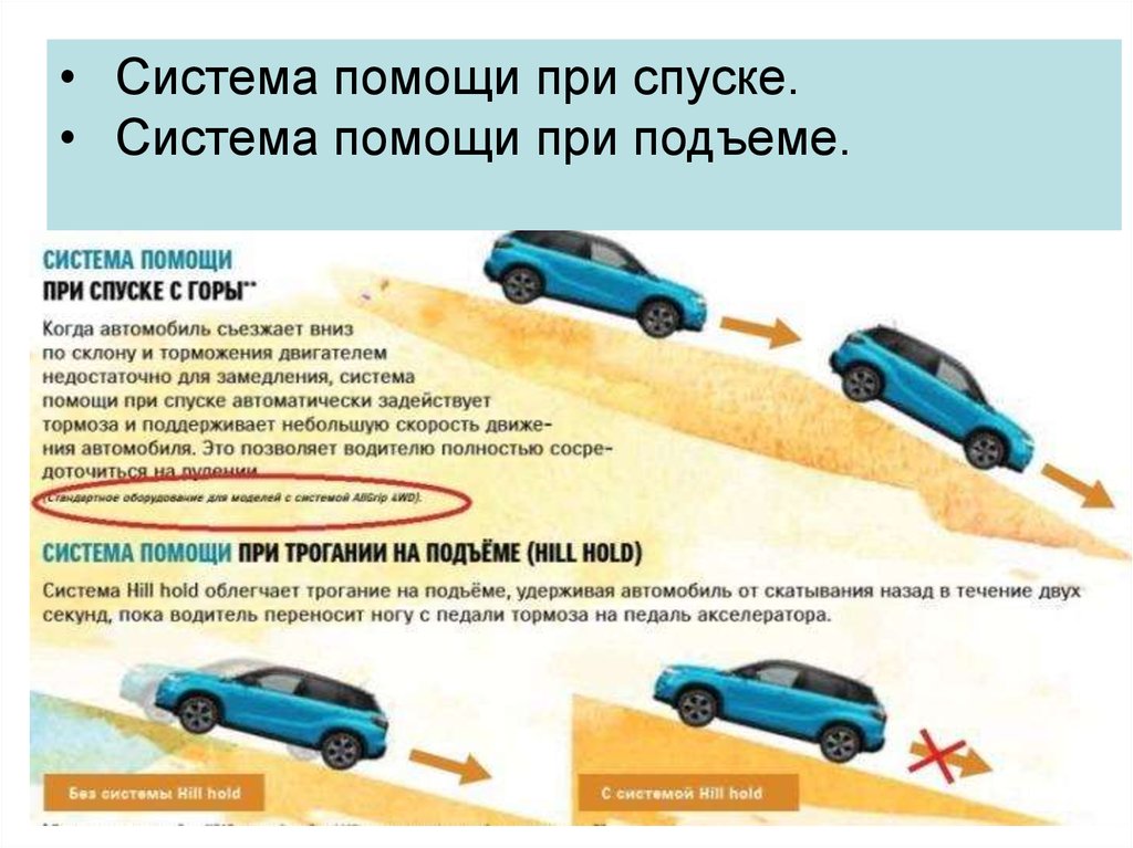 Именно с его помощью транспортное средство может удерживаться на крутых склонах без участия педали тормоза или активации ручника.