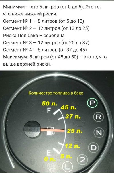 - После загорания лампочки в баке остается в среднем 5-7 литров бензина.