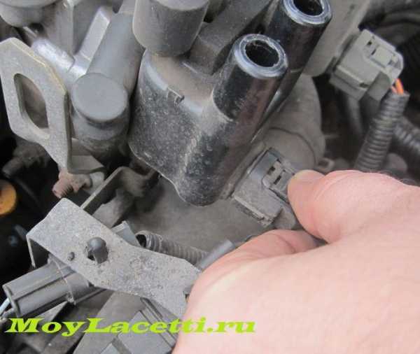 Первым делом обрабатываем низковольтные контакты катушки зажигания. Снимаем колодку и наносим спрей