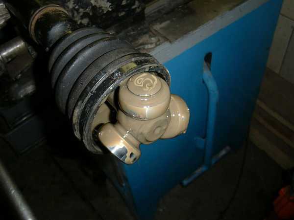 Теперь стоит заняться внешним ШРУСом — для того, чтобы извлечь из него шарики, необходимо будет сильно нажать на сепаратор с одной стороны, а если он не поддаётся, то сделать несколько ударов молотком через деревяшку. Доставая звёздочку и сепаратор, аналогичным образом отметьте их положение на корпусе, а также запомните, в какой очерёдности устанавливались шарики. Наружный ШРУС также необходимо будет очистить от старой смазки и, при необходимости, тщательно вымыть специальным средством. Не используйте обычное мыло и автошампуни — оставшись на стенках корпуса, они могут вступить в реакцию со смазкой и нарушить её свойства.