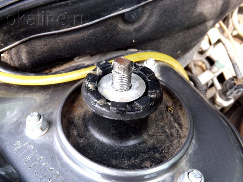 и амортизационная стойка со стороны водителя, установленная обратно в автомобиль с установленными верхними шайбой отбоя и гайкой