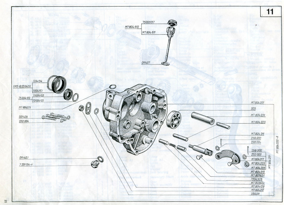 | Крышка подшипника вторичного вала: | 141.1701201-10 узкая, без спидометра |
