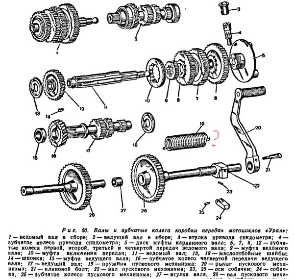КОРОБКА ПЕРЕДАЧ МОТОЦИКЛОВ «УРАЛ», К-750 И К-750М Коробки передач мотоциклов «Урал» и К-750, К-750М, К-650 (рис. 4.9)