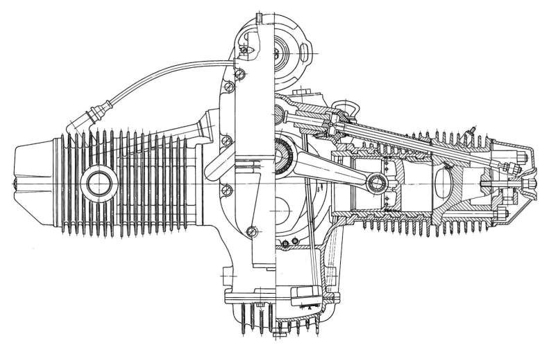 модель Оппозитный двигатель 4-тактный, бензиновое топливо Используются те же головки, что и для 9-цилиндрового радиального двигателя Диаметр цилиндра 27 мм Ход поршня 25 мм