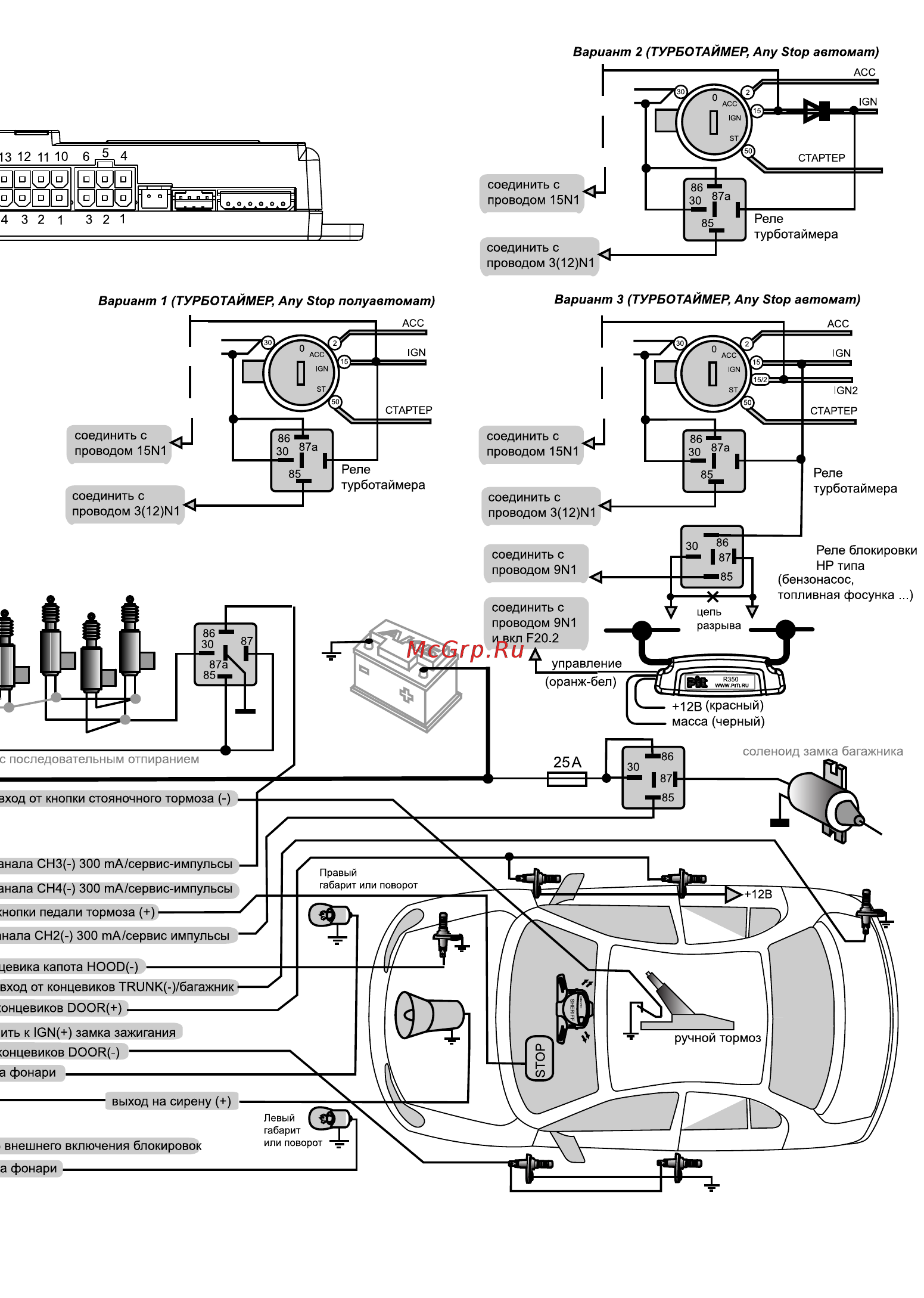 - Выход CH6 — релейный перепрограммируемый канал дополнительных устройств: выход управления пейджером или другими исполнительными устройствами, выход вежливой подсветки, турботаймер 2.