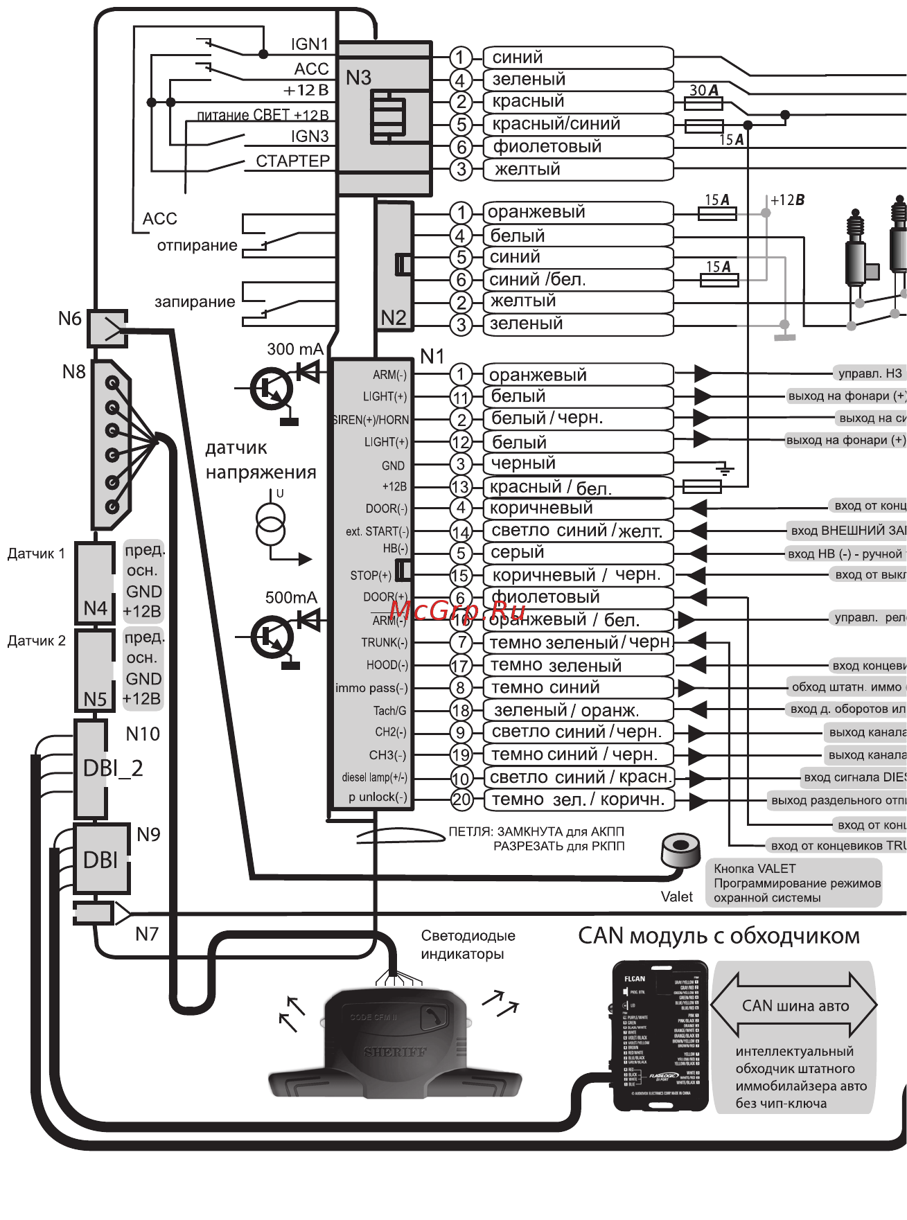 - Выход Ch5 — слаботочный перепрограммируемый канал дополнительных устройств: программируемые временные интервалы, сервис-импульсы, управление стеклоподъемником, выход вежливой подсветки.