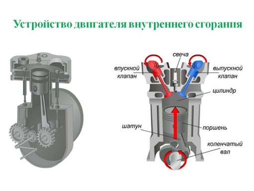 - кривошипно-шатунный механизм , который передаёт энергию движения на коленчатый вал;