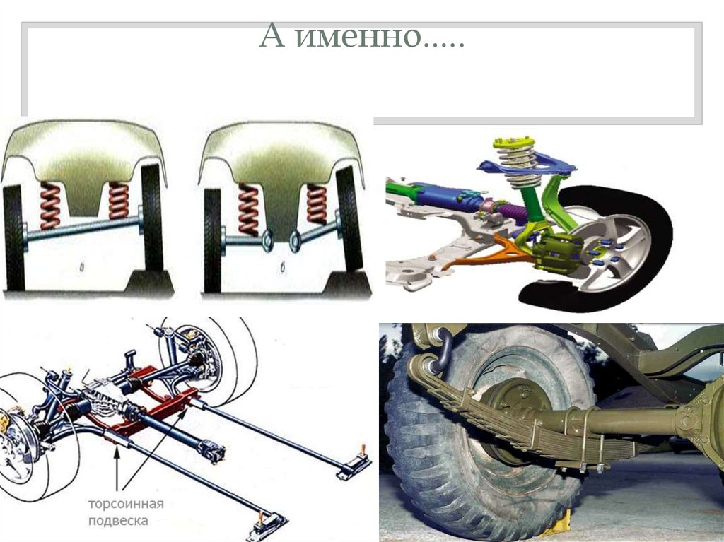 ΠΠΎ Ρ Π½Π΅ ΡΠΎΠ±ΠΈΡΠ°ΡΡΡ ΠΎΠ±ΡΡΠΆΠ΄Π°ΡΡ Π·Π΄Π΅ΡΡ Π²ΡΠ΅ ΠΌΠ΅Π»ΠΊΠΈΠ΅ Π΄Π΅ΡΠ°Π»ΠΈ, Π° ΡΠΎΠ»ΡΠΊΠΎ ΠΎΡΠ½ΠΎΠ²Π½ΡΠ΅ ΠΎΡΠ½ΠΎΠ²Π½ΡΠ΅ ΡΠ°ΡΡΠΈ ΡΠ°ΡΠΏΡΠΎΡΡΡΠ°Π½Π΅Π½Π½ΡΡ ΡΠΈΠΏΠΎΠ² Π°Π²ΡΠΎΠΌΠΎΠ±ΠΈΠ»ΡΠ½ΠΎΠΉ ΠΏΠΎΠ΄Π²Π΅ΡΠΊΠΈ, ΠΊΠΎΡΠΎΡΡΠ΅ ΠΈΡΠΏΠΎΠ»ΡΠ·ΡΡΡΡΡ Π² ΡΠΎΠ²ΡΠ΅ΠΌΠ΅Π½Π½ΡΡ Π°Π²ΡΠΎΠΌΠΎΠ±ΠΈΠ»ΡΡ . Π Π½Π°ΡΠ½Π΅ΠΌ Ρ Π½Π΅Π·Π°Π²ΠΈΡΠΈΠΌΠ°Ρ ΠΏΠΎΠ΄Π²Π΅ΡΠΊΠ°.