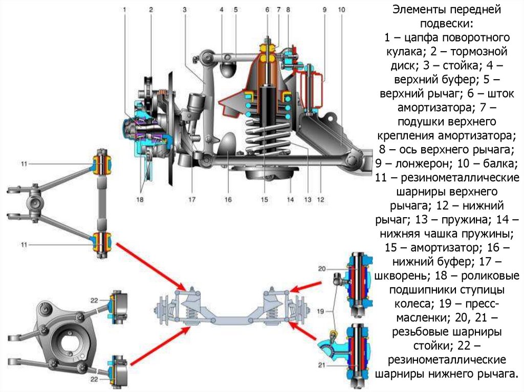 ΠΠΎΠ΄Π²Π΅ΡΠΊΠ° Π°Π²ΡΠΎΠΌΠΎΠ±ΠΈΠ»Ρ ΠΏΡΠ΅Π΄ΡΡΠ°Π²Π»ΡΠ΅Ρ ΡΠΎΠ±ΠΎΠΉ ΡΠΈΡΡΠ΅ΠΌΡ, ΡΠΎΡΡΠΎΡΡΡΡ ΠΈΠ· ΡΠΈΠ½, Π²ΠΎΠ·Π΄ΡΡ Π° Π² ΡΠΈΠ½Π°Ρ , ΠΏΡΡΠΆΠΈΠ½, Π°ΠΌΠΎΡΡΠΈΠ·Π°ΡΠΎΡΠΎΠ² ΠΈΠ»ΠΈ Π°ΠΌΠΎΡΡΠΈΠ·Π°ΡΠΎΡΠΎΠ², ΡΡΠ³, ΠΎΡΠΈ, ΡΠ°ΠΌΡ, ΡΡΠ»Π΅Π²ΠΎΠ³ΠΎ ΡΡΡΠ°Π³Π°, ΠΏΠΎΠΏΠ΅ΡΠ΅ΡΠ½ΡΡ ΡΡΡΠ°Π³ΠΎΠ² ΠΈ ΠΌΠ½ΠΎΠ³ΠΈΡ Π΄ΡΡΠ³ΠΈΡ ΡΠΎΠ΅Π΄ΠΈΠ½Π΅Π½ΠΈΠΉ, ΡΠΎΠ΅Π΄ΠΈΠ½ΡΡΡΠΈΡ Π°Π²ΡΠΎΠΌΠΎΠ±ΠΈΠ»Ρ Ρ ΠΊΠΎΠ»Π΅ΡΠ°ΠΌΠΈ.