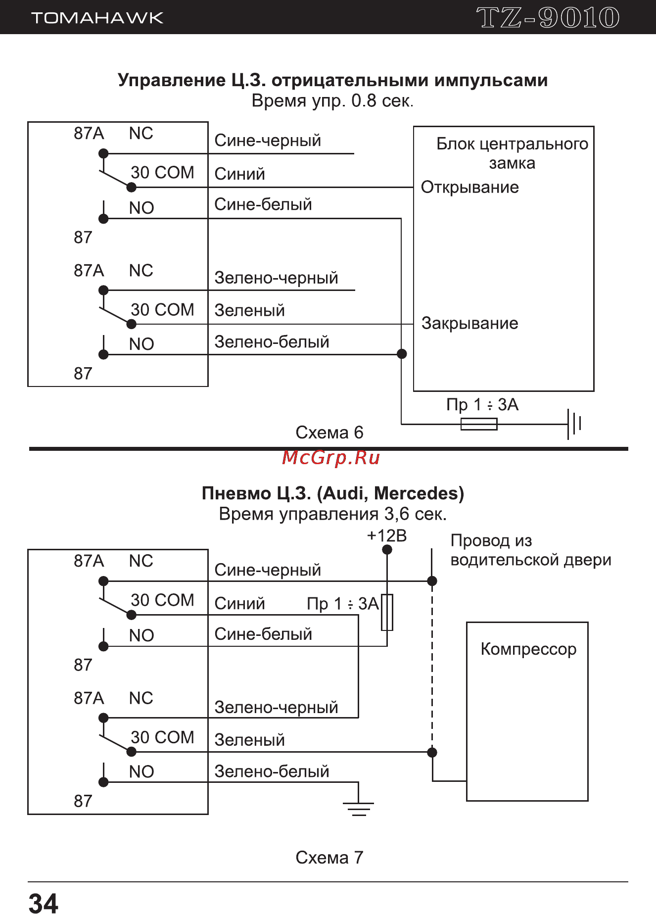 Нажимайте обе кнопки, пока не услышите звуковое и световое подтверждение. Выключите зажигание, как только все блоки дистанционного управления будут закодированы. Важно: Кодирование ключей удаляет старые коды. Можно закодировать максимум 4 пульта дистанционного управления. Подключение центрального замка. Дополнительную информацию см. В техническом руководстве.P-1 Multiplug, Central Locking Plug для подключения центрального замка, см. схема, стр. 14 Штекер центрального замка P-1 должен быть настроен (назначен) для соответствующего автомобиля. Если функция центрального замка неясна, следует обратиться к оригинальным принципиальным схемам автомобиля. Всегда проверяйте с помощью вольтметра / мультиметра перед выполнением любых подключений. Неиспользуемые провода в вилке P-1 необходимо отсоединить или заизолировать. Важно: каждое реле в центральном блоке может быть нагружено максимум 15 ампер.Центральный блок может быть поврежден при правильном подключении или перегрузке. Выход П-1.1 защищен автоматическим выключателем.