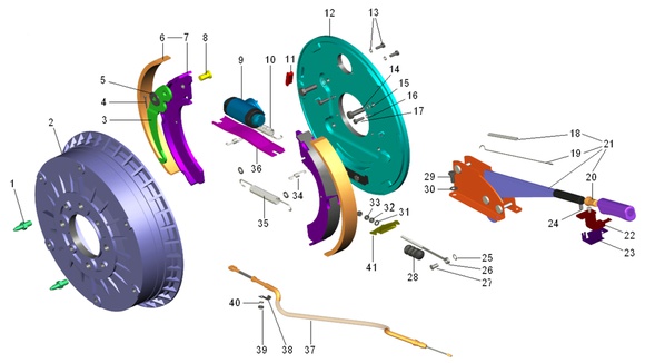 1. Замените вышедшие из строя детали колесных цилиндров, промойте и просушите колодки, диски и барабаны, прокачайте систему гидропривода