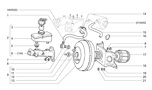 Вакуумный усилитель уменьшает усилие, прикладываемое к педали. Это делает систему более эффективной.