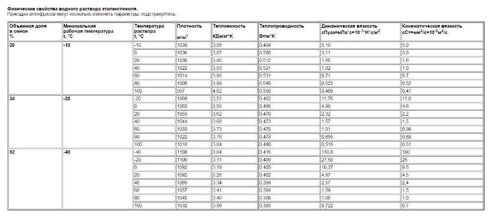 Свойства, такие как температура замерзания, вязкость, удельный вес и удельная теплоемкость теплоносителей на основе этиленгликоля или соляных растворов.Защита от замерзания жидких теплоносителей на водной основе