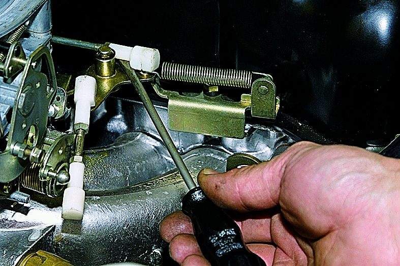 — Для обеспечения стабильного пуска холодного двигателя автомобиля помимо доработки телескопической тяги так же стоит провести регулировку пускового устройства карбюратора.