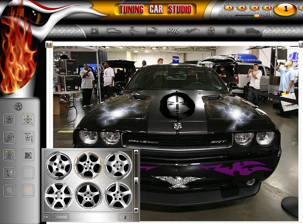 Ещё одним вариантом является требовательная Tuning Car Studio. Почему требовательная? Потому что фотография автомобиля с низким разрешением не пройдёт фильтрацию программы. Картинка будет чёткой, изменение в режиме реального времени дисков, стиля стёкол, фар и элементов интерьера – эффективным.