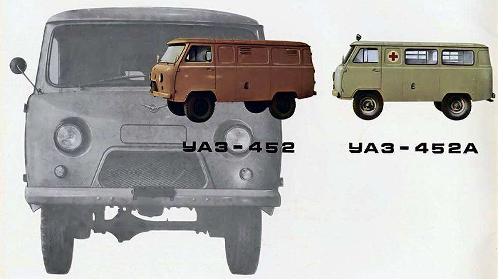 Наряду с техническими изменениями был проведен небольшой «фейслифтинг». Автомобиль получил привычный большинству из нас дизайн передней части. И в то же время новое название УАЗ-452. В зависимости от назначения автомобиля к нему добавлялась та или иная буква. Так, например, скорая помощь «Буханки» получила индекс 452А, десятиместный микроавтобус — 452Б, грузовик — 452Д.