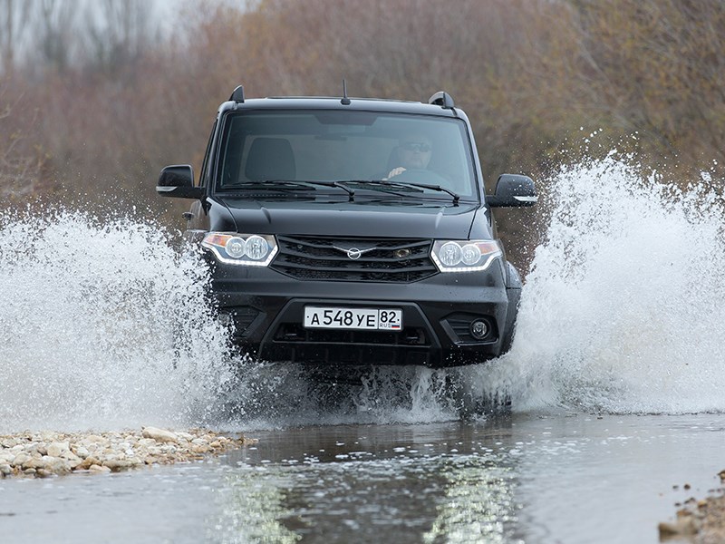 Если сравнивать с УАЗ Буханка, то Карго приятнее за счет того, что от бампера до водителя появился еще метр. Кабина 2-дверная, в ней 2 места, постоянный задний привод, есть и подключаемый передний привод. В салоне комфортнее, чем у буханки. Грузовая кабина произведена подразделением BASF, в ней комфорт намного лучше, чем у буханки, что заметно при езде по загородным дорогам. Грузовик УАЗ Патриот может проезжать ямы, не снижая скорости.