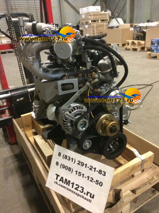 4216.1000402-71 — Двигатель для легких коммерческих автомобилей марки ГАЗ, кронштейн крепления двигателя под ГУР, поликлиновый привод, компрессор SD-5.