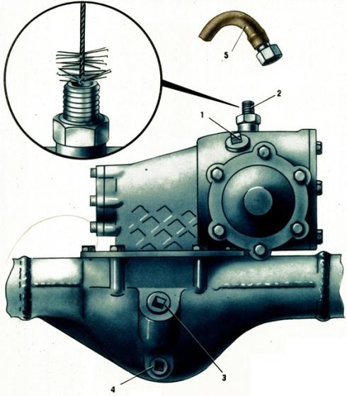 Следует промыть от грязи предохранительные клапаны мостов, предназначенные для сообщения внутренней полости картера моста с атмосферой и расположенные в верхних стенках балок мостов: на переднем мосту ЗИЛ-131 — слева (по ходу) от главной передачи; на заднем и промежуточном мостах — справа (по ходу) от главной передачи.