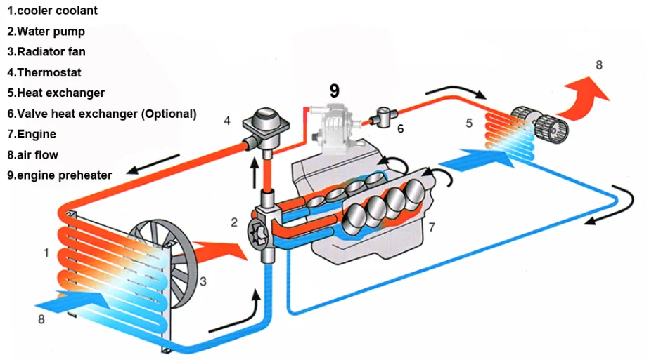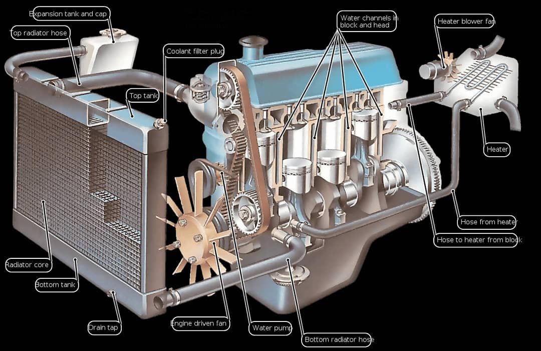 Интенсивное выделение тепла при сгорании топлива и воздуха требует наличия некоторых средств охлаждения для всех двигателей внутреннего сгорания. Поршневые двигатели охлаждаются либо путем пропускания воздуха через ребра, прикрепленные к цилиндрам, либо путем пропускания жидкого хладагента через кожухи, окружающие цилиндры.