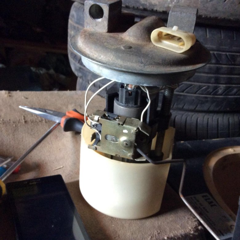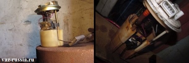 В комплект топливного модуля также входят: датчик уровня топлива с поплавком и фильтр грубой очистки — сеточка. К бензонасосу подводятся два топливопровода: