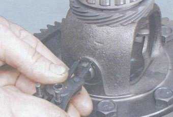 4. Выньте из корпуса дифференциала ось сателлитов и два сателлита.