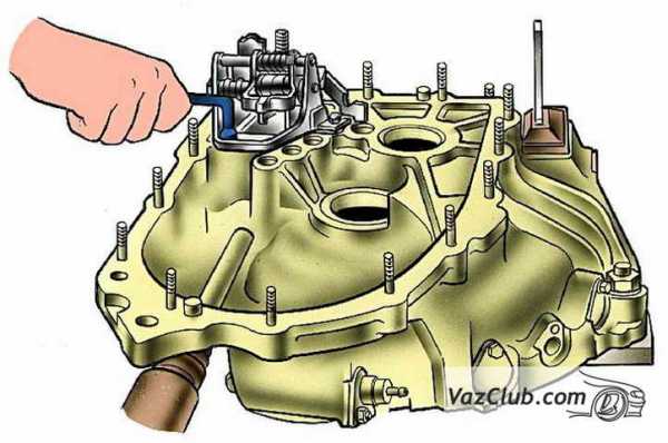 - Отверните болты крепления механизма выбора передач и снимите его.