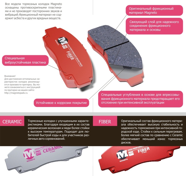 В ассортименте присутствуют и керамические колодки для соответствующей системы.