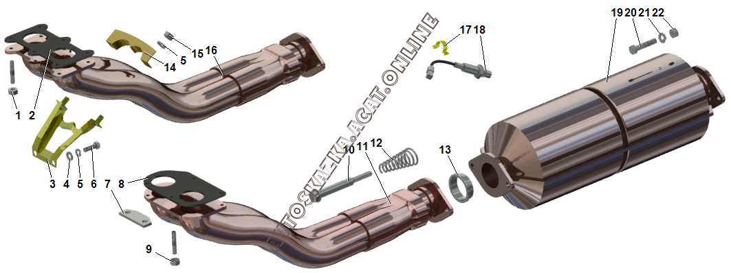 Не все компоненты выхлопа разбираются, некоторые детали, такие как нейтрализатор, а также оба глушителя, их замена производится целиком.
