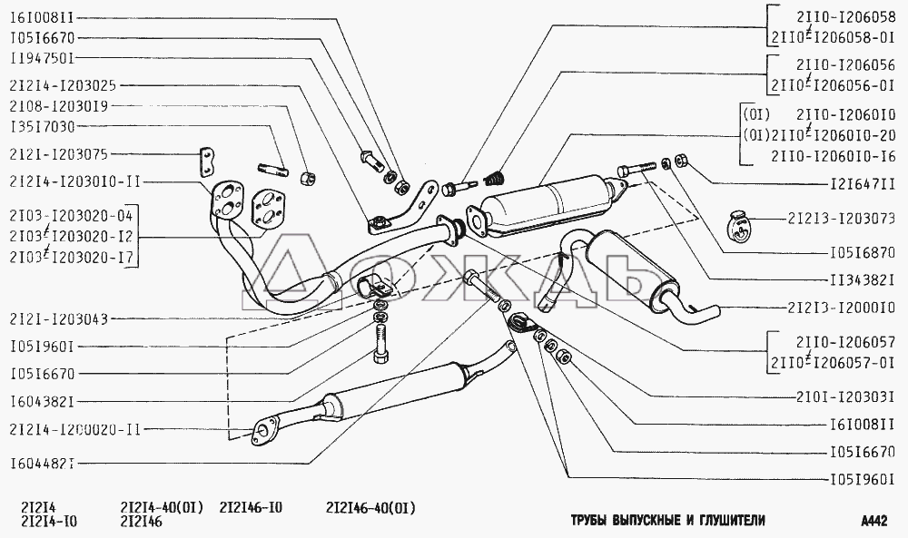 Запчасти выхлопной системы для Лада 4х4 (Нива) 21214, 21213, 2121, 2131
