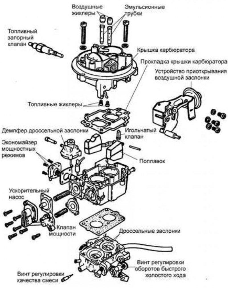 Эту операцию можно выполнять как на снятом, так и на установленном в автомобиле карбюраторе.