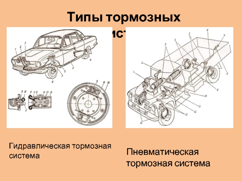 В зависимости от типа привода различают тормозные системы с гидравлическим, пневматическим и пневмогидравлическим приводом.