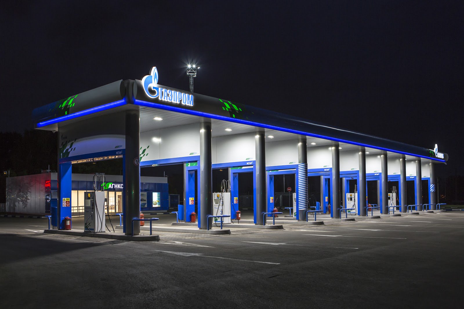 CNG (Compressed Natural Gas) или сжатый метан производиться непосредственно на самих заправочных станциях, которые так и называются — АГНКС (автомобильная газонаполнительная компрессионная станция).